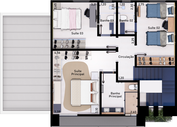 Áreas privativas com metragens aproximadas, devendo prevalecer o quadro de áreas do memorial de incorporação. Os itens de mobília, decoração e acabamento serão entregues conforme memorial descritivo. A locação de elementos estruturais pode variar de acordo com exigências técnicas. As vegetações que compõem o paisagismo nas imagens são meramente ilustrativas e apresentam porte adulto de referência. Todas as imagens são meramente ilustrativas. R-3 – 297.462